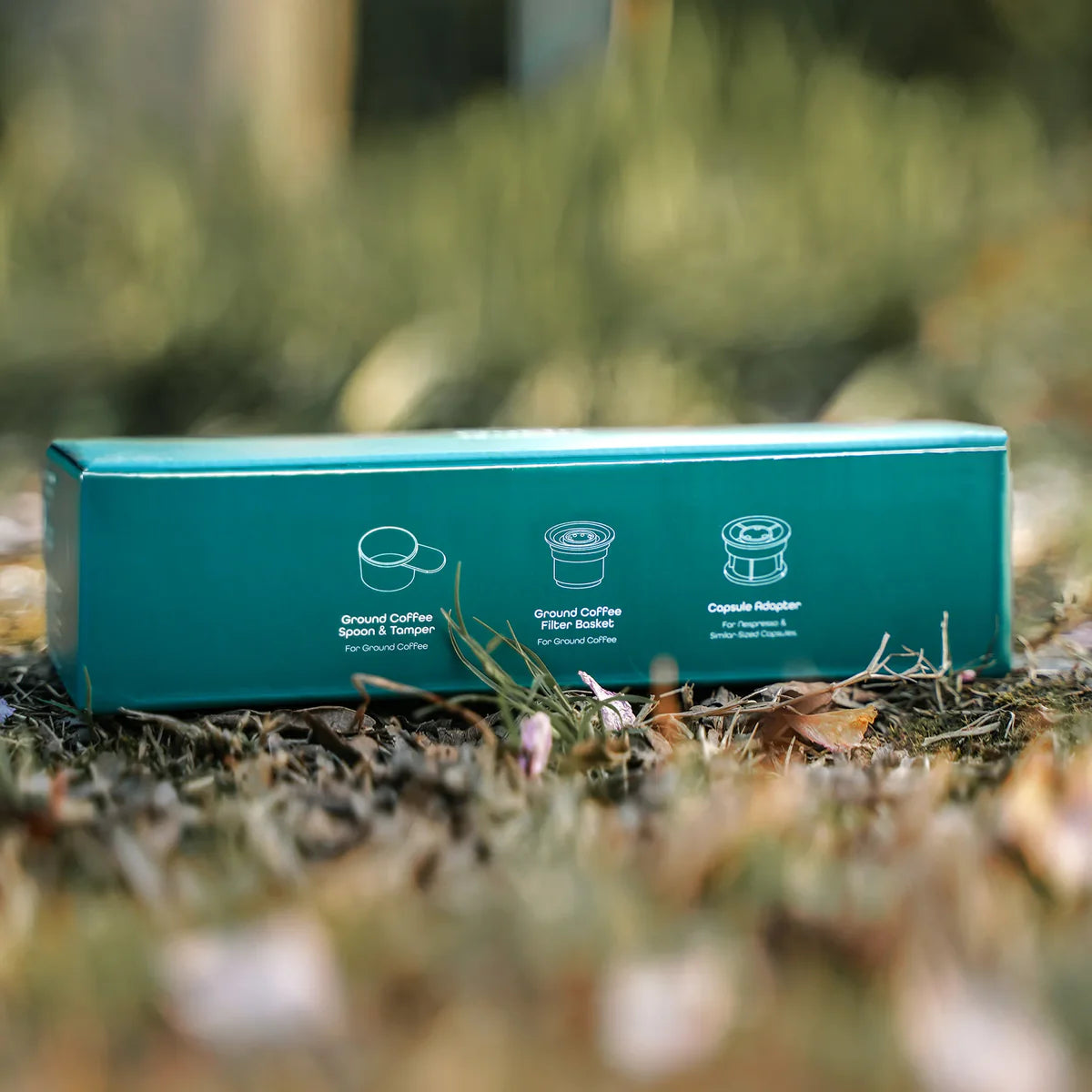 Zestaw akcesoriów do ekspresu podróżnego OutIn Nano pozwala parzyć kawę zarówno z kapsułek Nespresso, jak i świeżo mielonej kawy, dając pełną swobodę wyboru. Adapter na kapsułki i koszyk na kawę mieloną umożliwiają wybór odpowiedniej formy zaparzenia kawy oraz wyjątkowy smak espresso w każdych warunkach.