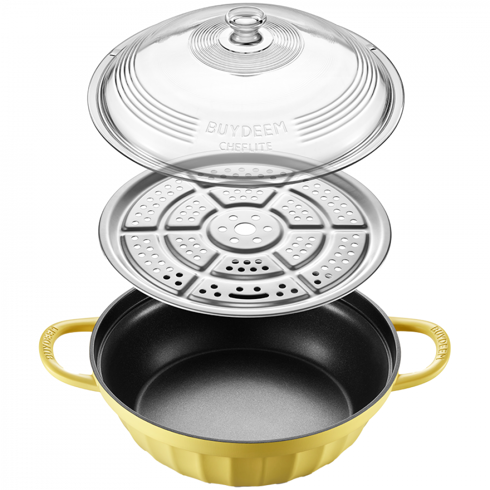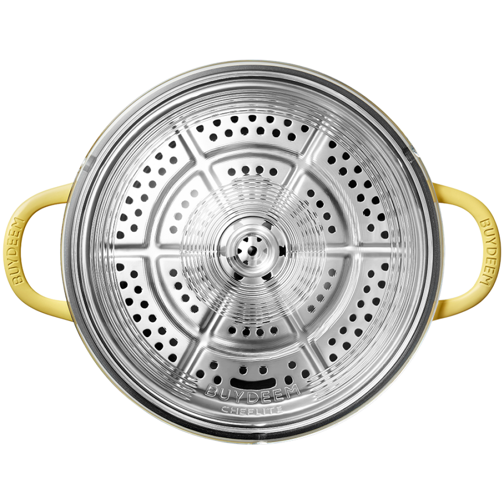 Zyskaj wszechstronność dzięki dołączonej metalowej tacy do gotowania na parze, która umożliwia przygotowywanie zdrowych posiłków bez tłuszczu. To naczynie doskonale sprawdzi się w każdej kuchni, a jego klasyczny design w kolorze Mellow Yellow doda uroku Twoim kulinarnym przygodom.